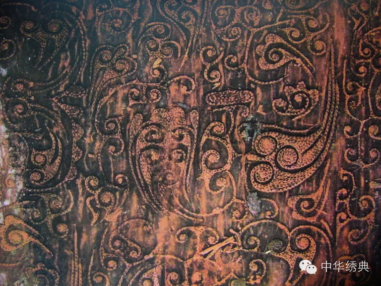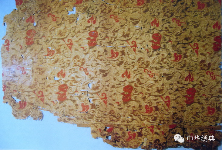 1972年長沙馬王堆一號墓出土的煙色絹地信期紋刺繡殘片