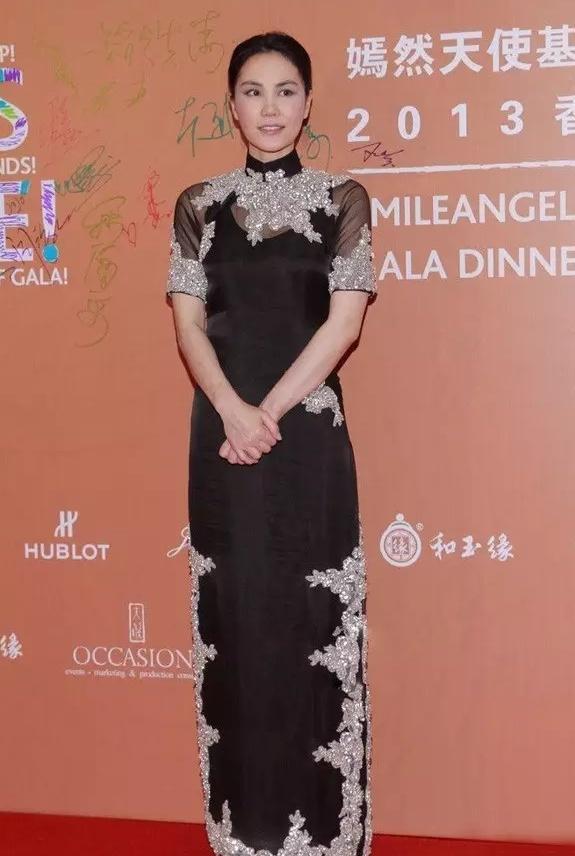 天后王菲穿黑色鑲鉆旗袍,低調(diào)不失精致感。