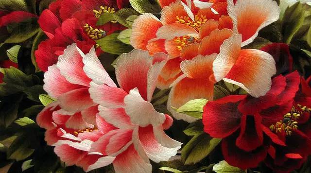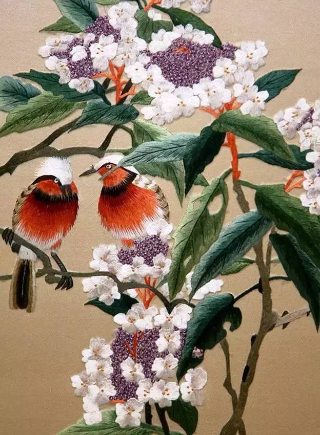 四大名繡各具特色,別有風趣:如蘇繡:以“精細、雅潔”著稱,它圖案秀麗、色澤文靜,繡工細致而傳神;粵繡:以寫生花鳥為主,自然工整、繁而不亂,色彩奪目而格外精美;湘繡:常以中國畫為藍本,風格豪放、生動,又十分逼真;而蜀繡呢,則具有濃厚的地方特色:形象生動、色彩也艷,而且變化豐富、極有立體感。