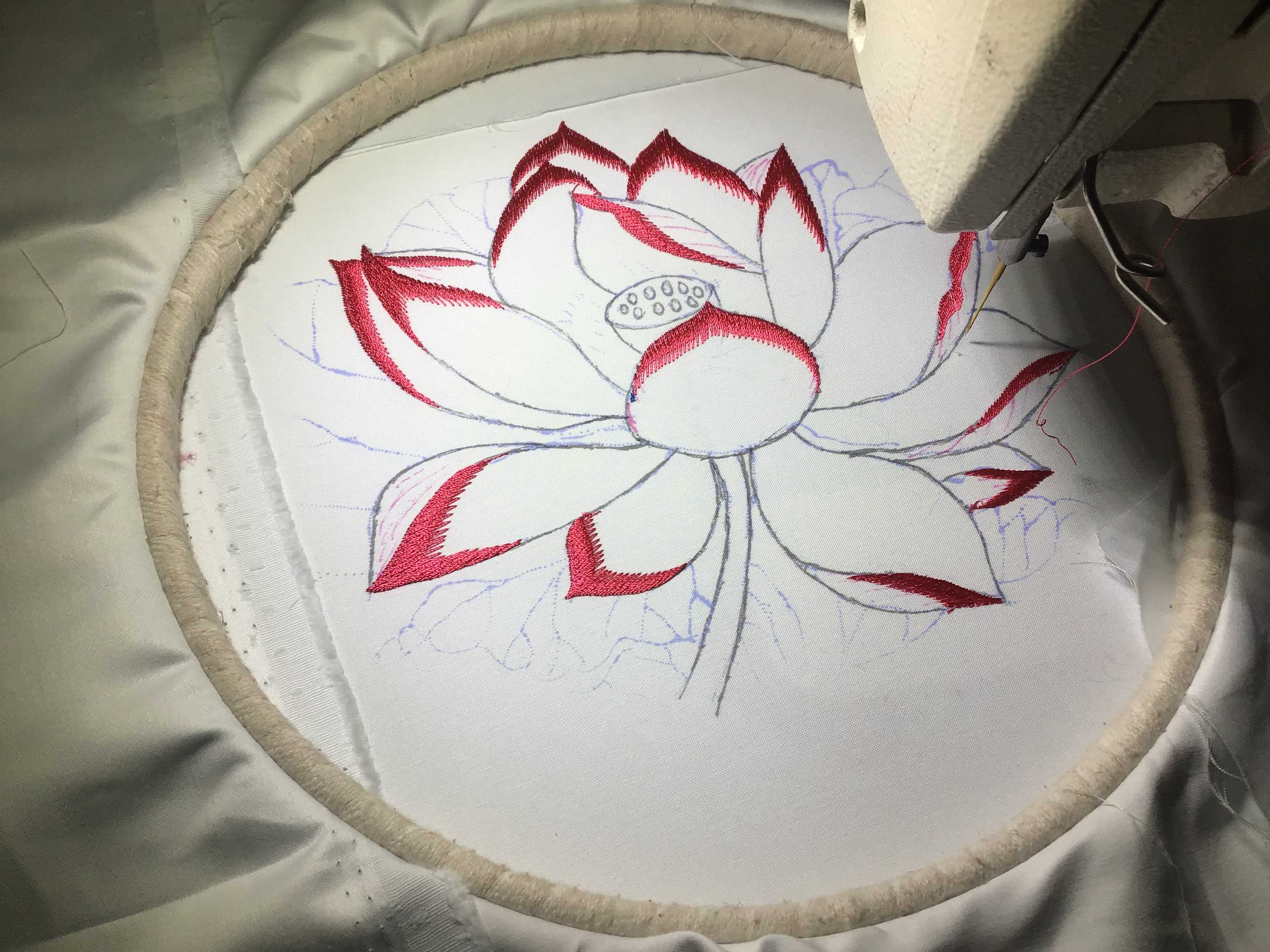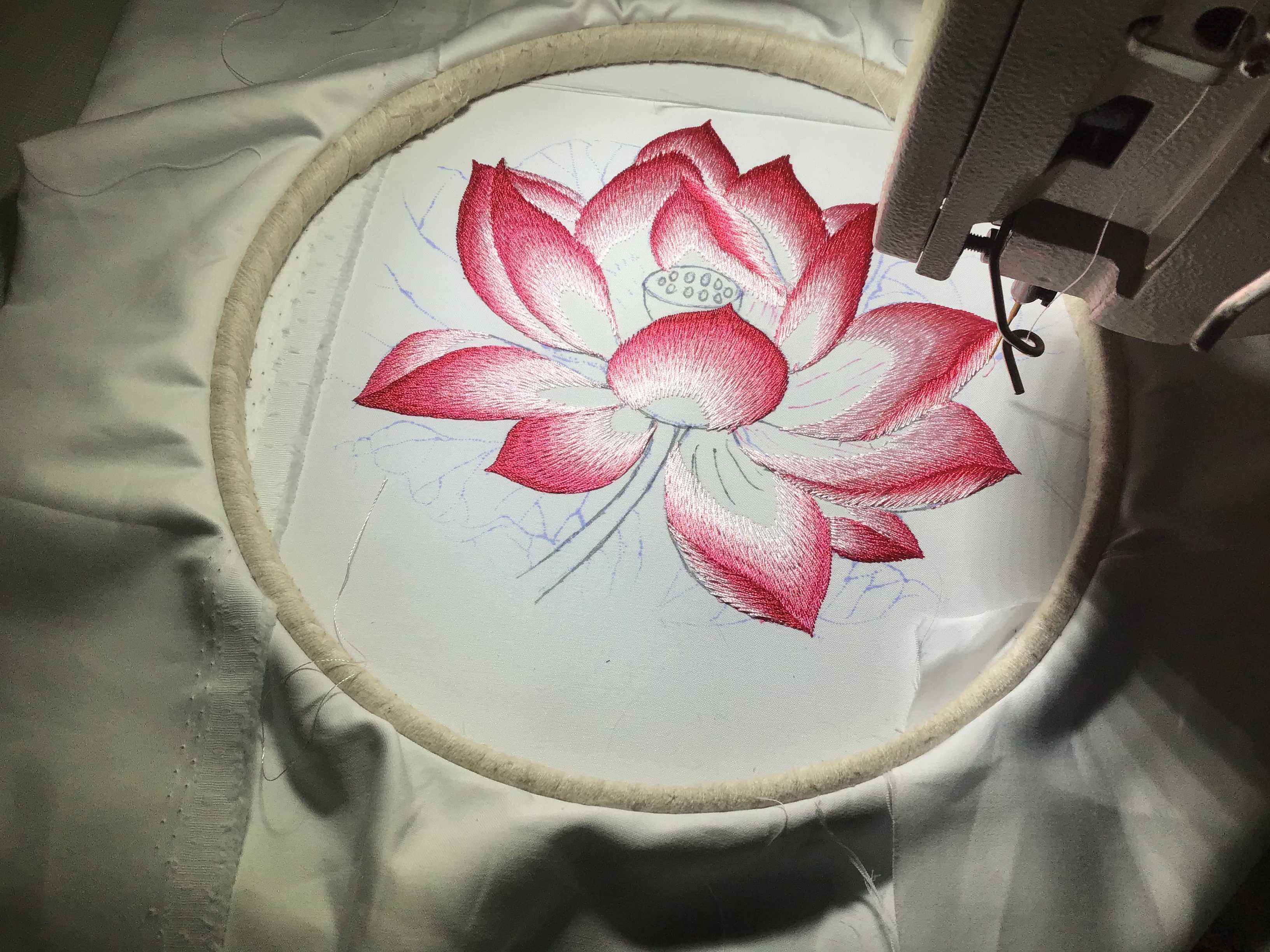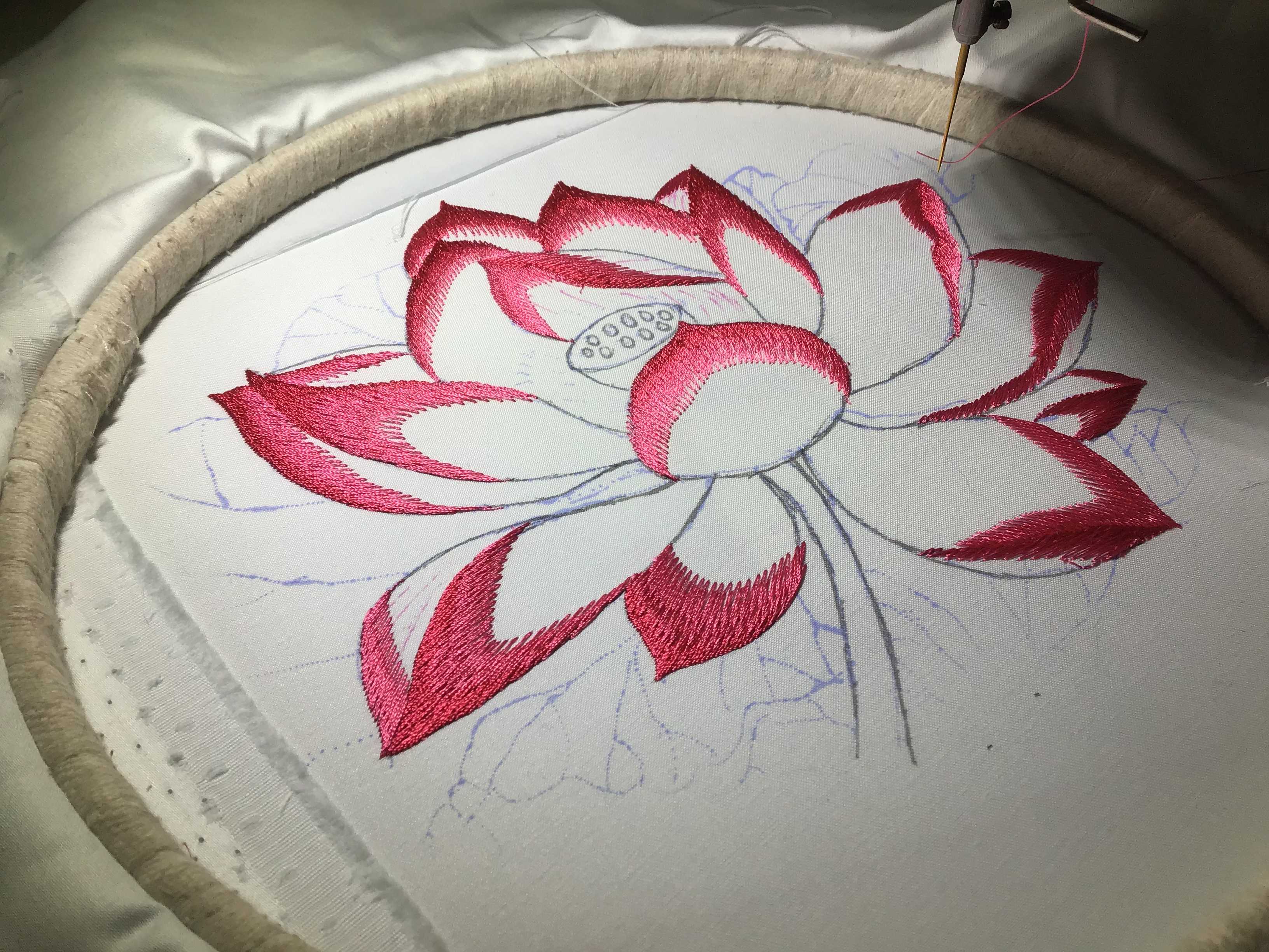 繡上花蕊和蓮蓬,一幅荷花就繡完了