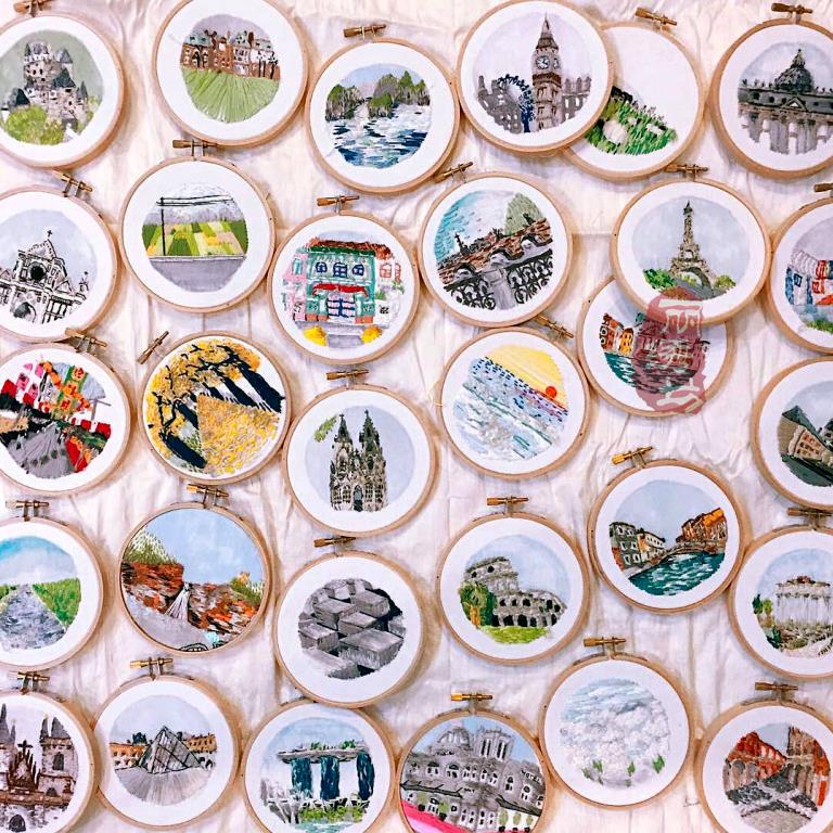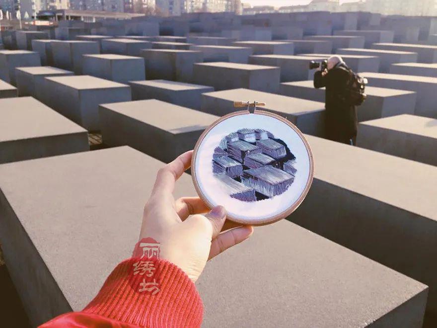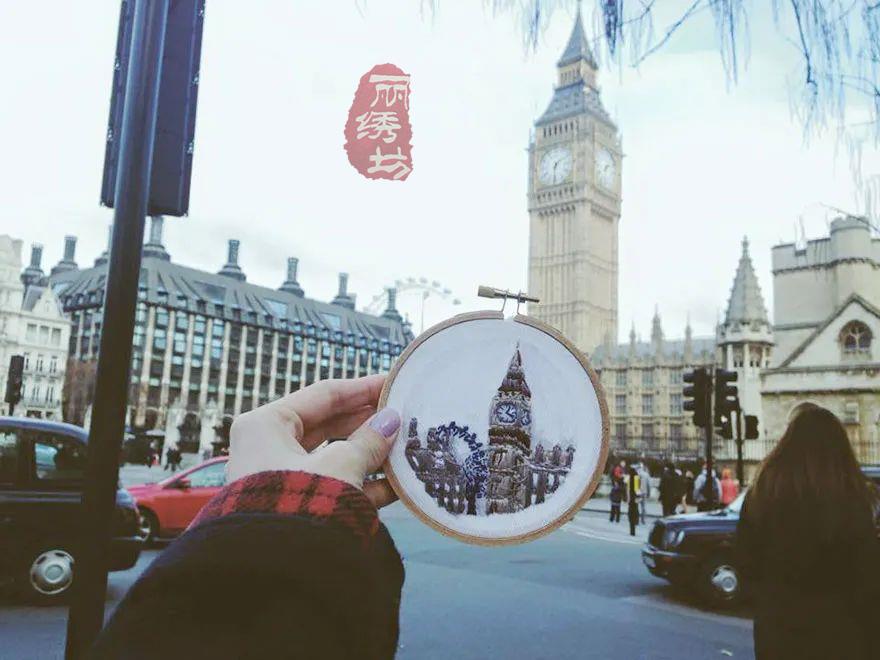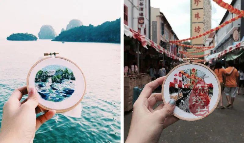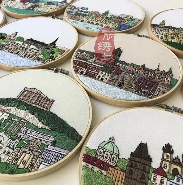 特蕾莎喜歡用針線捕捉多彩的,和大多數人外出旅游,喜歡用智能相機快速拍照不同,特蕾莎通常花費數小時,將標志性的風景與建筑,一筆一劃的畫出來,然后通過針線刺繡出來。