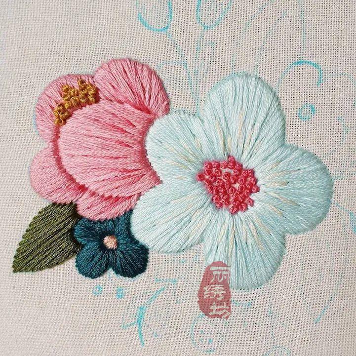 來自溫哥華的刺繡藝術家凱特琳,特別喜歡花卉植物,但越是美麗的東西總是越脆弱。無論多么生機盎然的花朵,總有枯萎凋零的那一天。凱特琳選擇用畫筆畫下來,然后用針線一針一角的描摹下來,易逝的花朵,便有了永恒的生命。