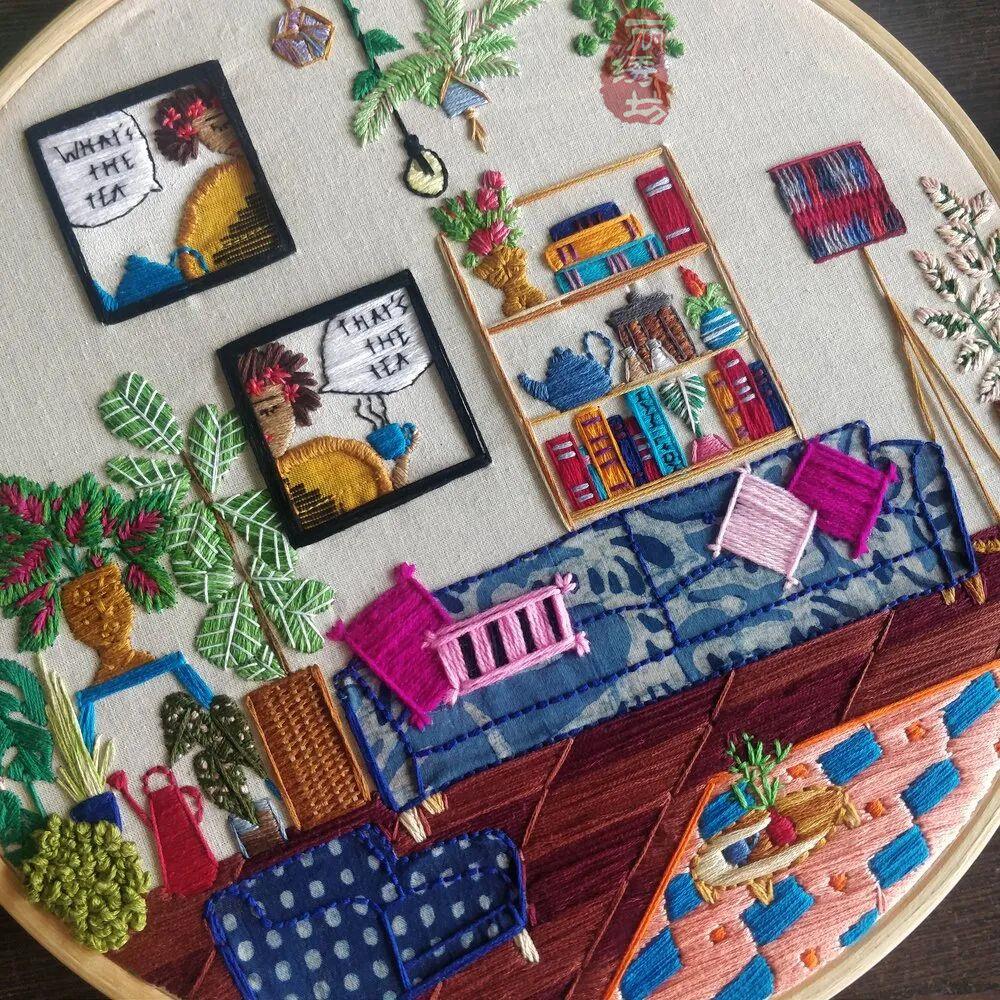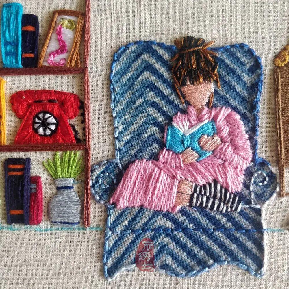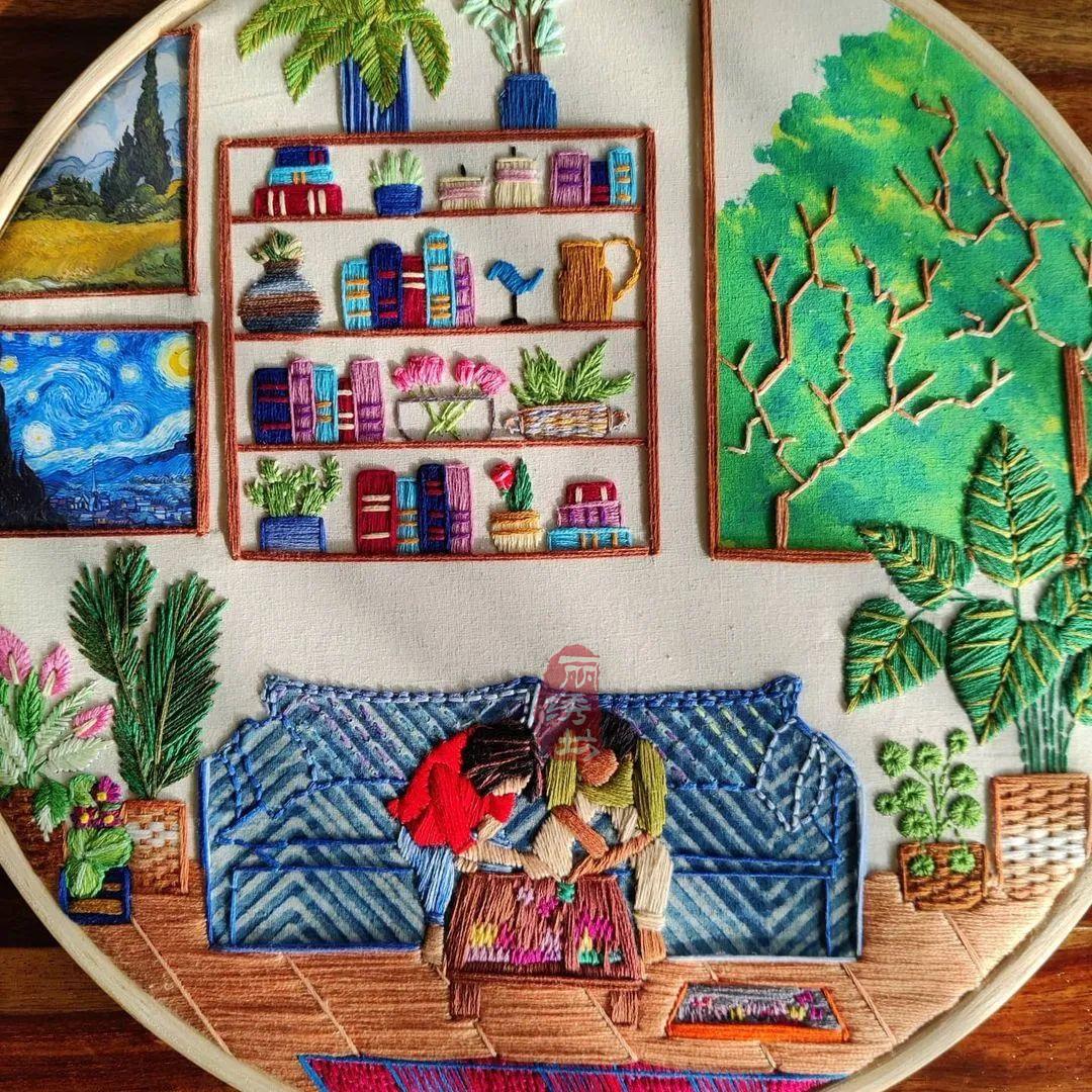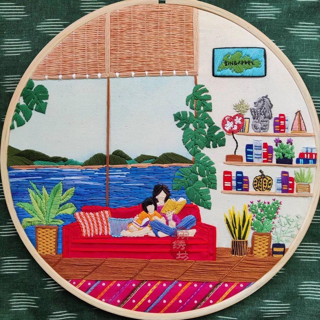 她用一針一圈的繡出細膩精致的居家氛圍,和戶外花園時光。讓受眾在看到這些作品時,意識到淡極始覺甜,即便獨自宅在家中,也能從單調的日常中提煉愜意悠閑的時光。