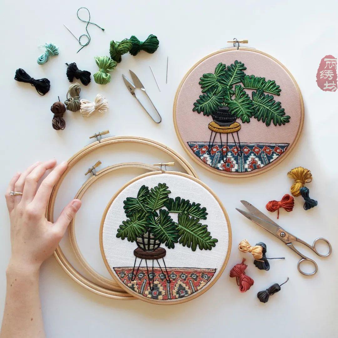 初,凱特琳只是將刺繡作為業余愛好。她喜歡刺繡的過程,因為可以將畫面中的植物,一點一點的描摹出來,賦予植物第二次生命。凱特琳以自然為靈感,以周圍的為磁場,開始一次又一次,一幅接著一幅的創作。