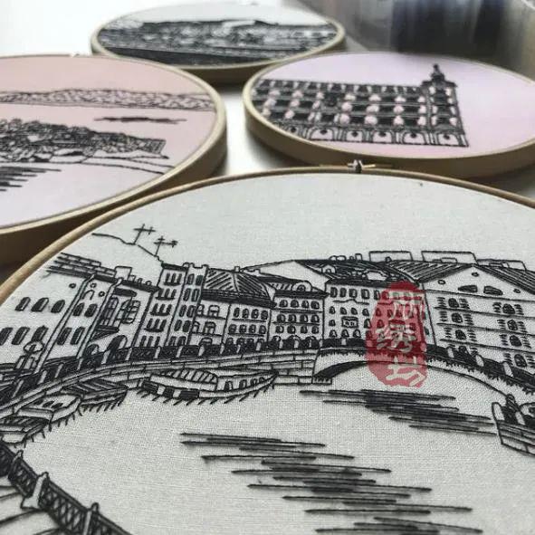 在一次短暫的旅行中,克塞尼婭穿越瑞典和芬蘭,各種雄渾的建筑讓她震驚。于是當她刺繡了130多座城市圖案,向各地的年輕人展現自己的熱愛與激情。