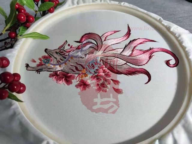 繡花一族手推繡九尾狐