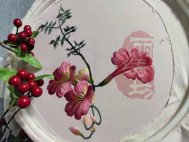 繡花一族手推繡凌霄花
