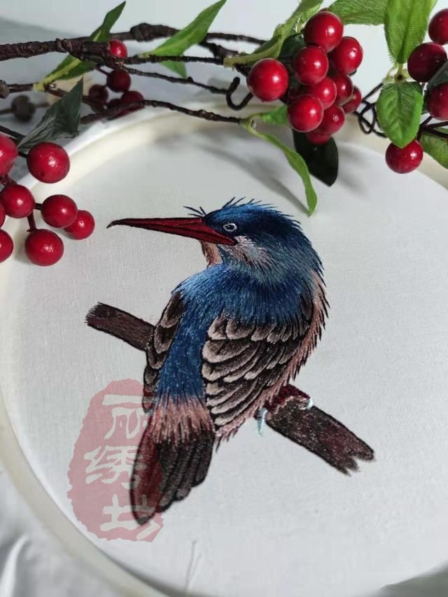 繡花一族手推繡翠鳥