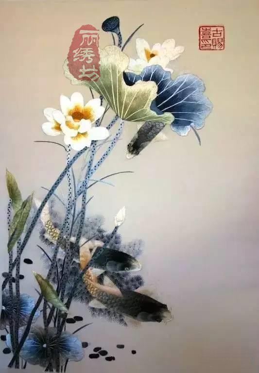 刺繡“金魚戲藻”