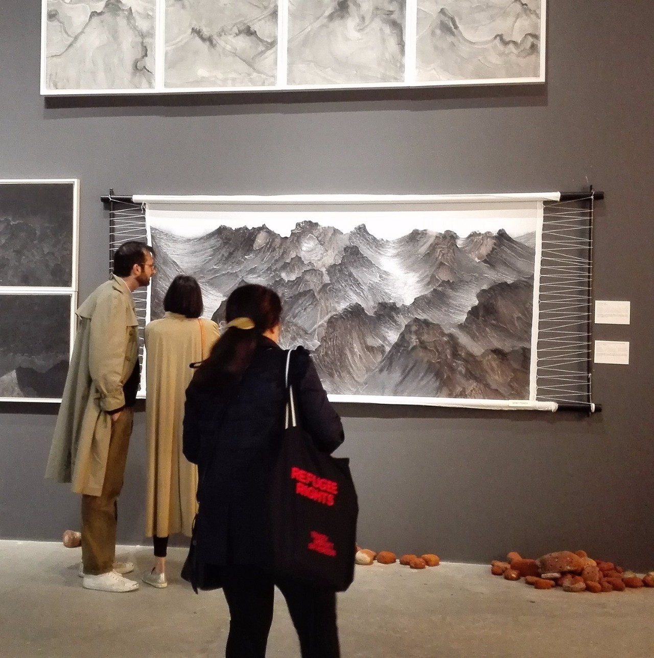 觀眾參觀姚惠芬與湯南南合作的《遺忘之海202》