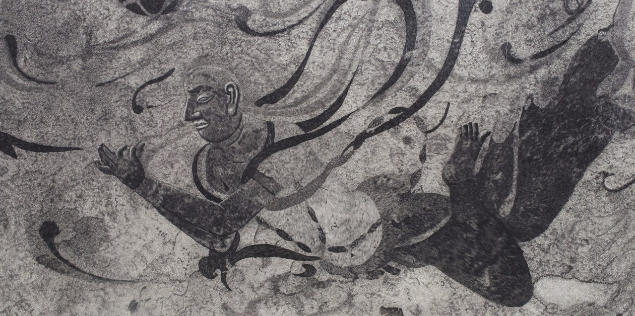 除了與鄔建安合作《骷髏幻戲圖》,此次威尼斯雙年展姚惠芬還與湯南南合作了《遺忘之海202》,與邱志杰、湯南南合作一組11幅的《精衛(wèi)》,獨立繡制了《馬遠·水圖》一組12幅以及《美女與骷髏》等,一共達34幅。