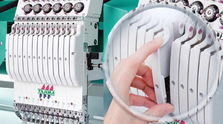 線張力及針桿拉動由傳統每個機頭調控改為每支針桿獨立操控,令線材物料及針法可因設計高度配合,繡花質量精益求精。