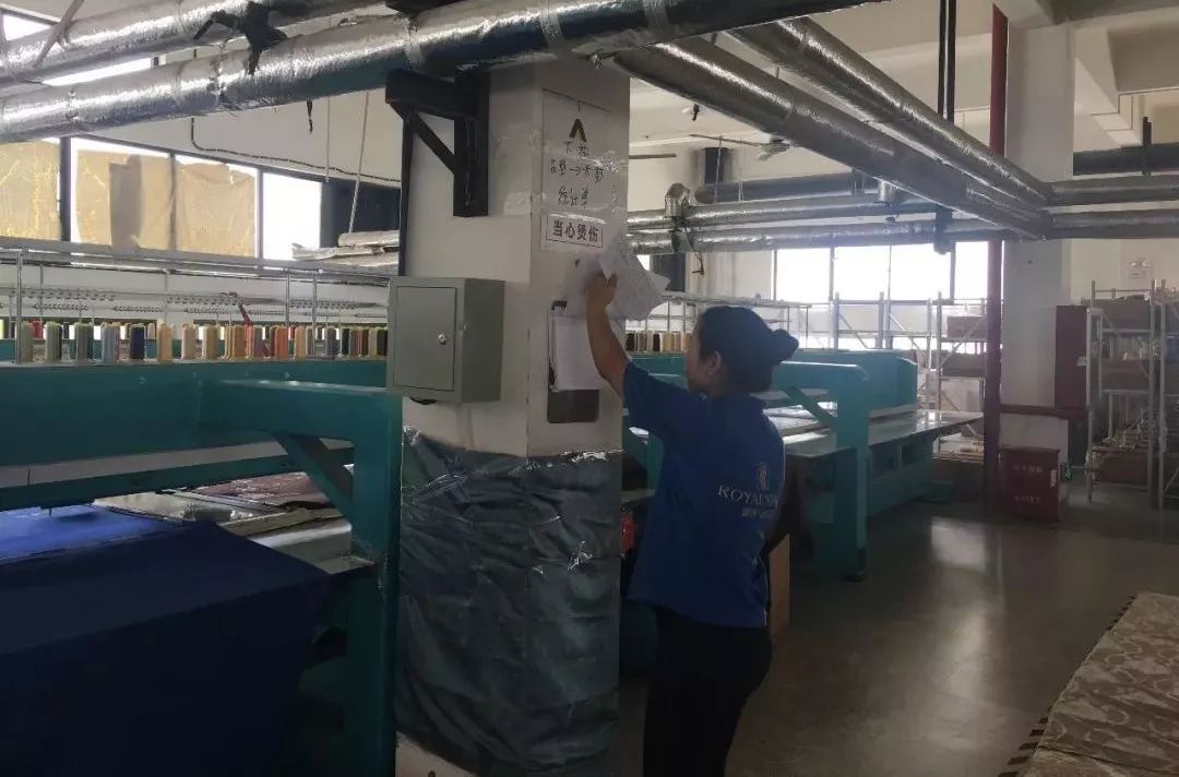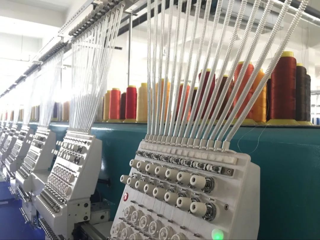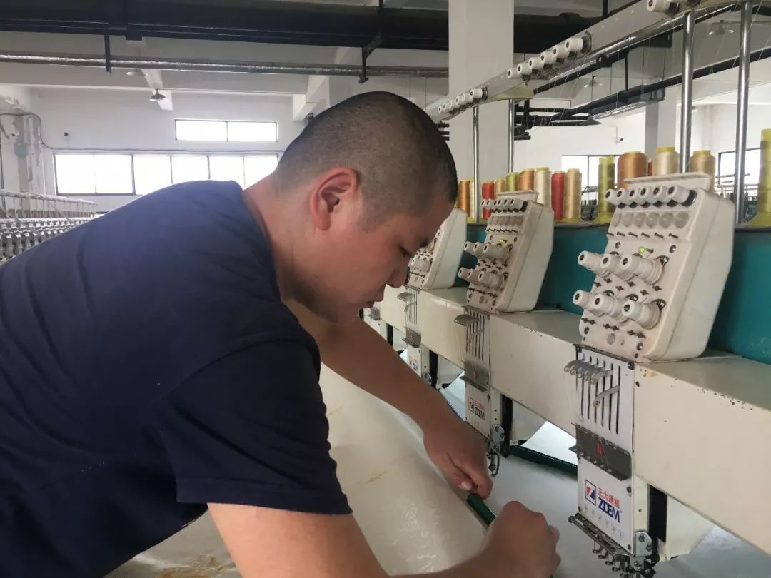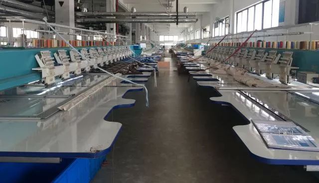 排列整齊的繡花車間,一臺(tái)臺(tái)繡花機(jī)在高速運(yùn)轉(zhuǎn),保質(zhì)保量地將產(chǎn)品生產(chǎn)出來。