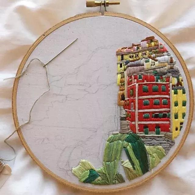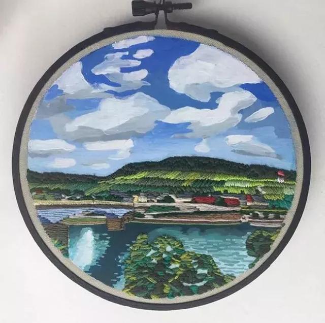 水彩繪畫太簡單了,到處都是。刺繡呢,見過的也不少。那么刺繡加水彩自成風景,你見過嗎?