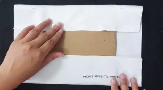 找一塊合適的紙板,把布多余的部分折起來,用膠水粘住。(一定要繃緊繡布防止松動!)