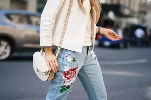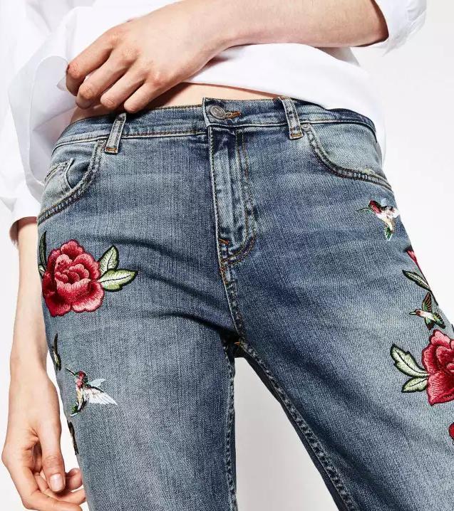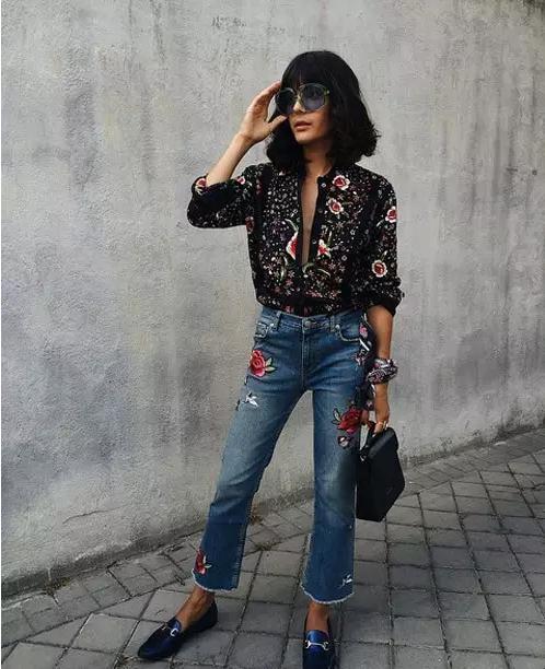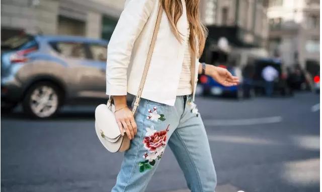 很多波西米亞風的上衣和連衣裙,一直以來都有著刺繡的設計,今年很多品牌更是跟著Gucci,把刺繡延伸到了其他單品上,比如牛仔褲。像Zara、FCUK、Missguided、H&M…都推出了一大波刺繡牛仔褲,也被各路明星和博主們穿在身上。