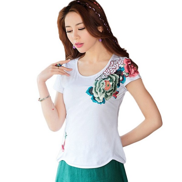 女性朋友穿戴一款繡花T恤效果會怎樣,繡花T恤由各色線條精細勾勒的繡花圖案,異彩紛呈,讓整個身材生動立體,繡花與休閑T恤相結合,讓一年普通的T恤變得不再普通,給休閑的穿著增添一分精致雅趣。在簡約T恤這張白紙上,不同刺繡表達不同性格,讓造型充滿靈氣。