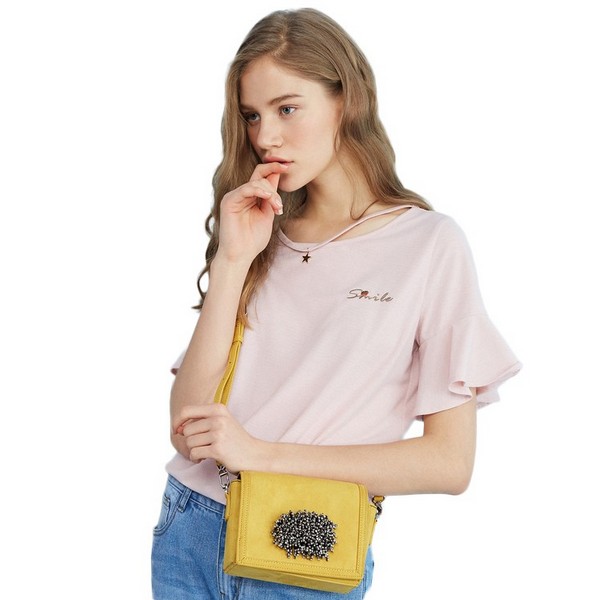 01 粉色棉T溫柔淑女,肩部刺繡點綴突出造型亮點、模糊對肩寬的判斷,粉色配白色清新純美,配藍色甜美優雅,與刺繡圖案色彩呼應則顯整體心機。