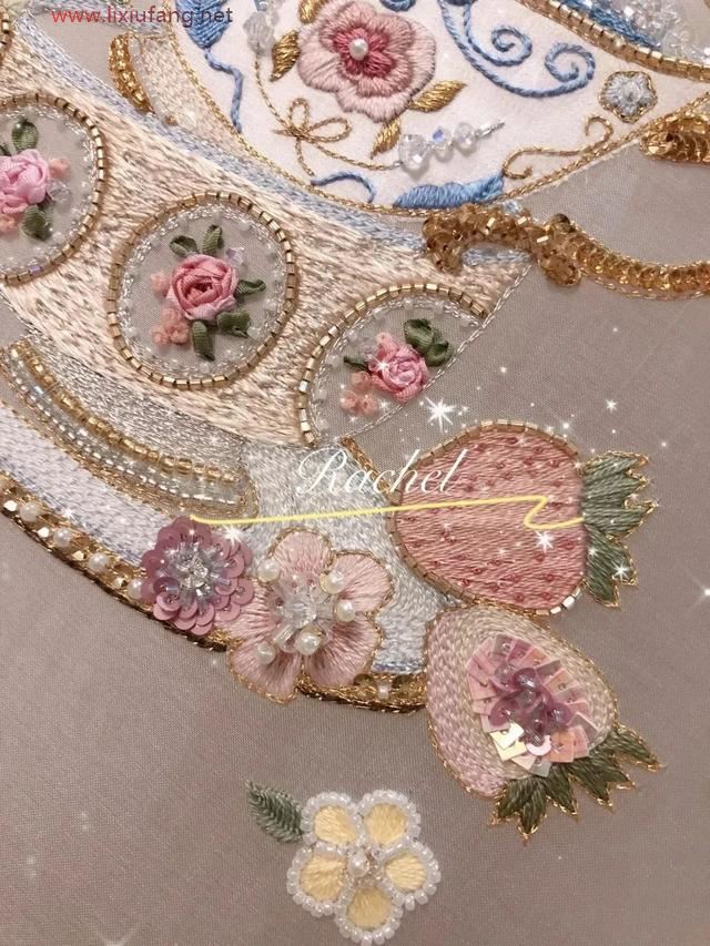 國內如今也有一些工作室開設法式刺繡課,網上也有不少大神的分享。如果大家有興趣可以先買一些簡單的道具:繡繃、絲線、亮片、米珠,先從簡單的小花、小動物開始學起。
