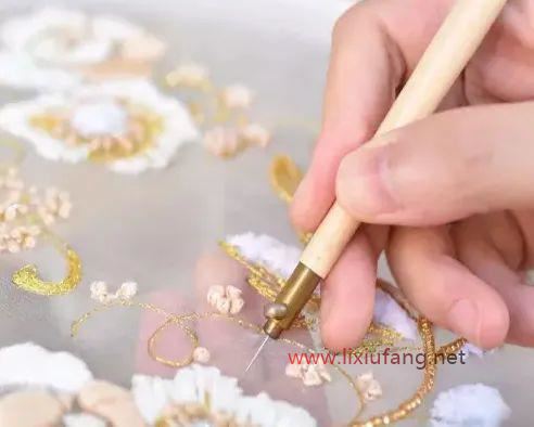 除了樣式美輪美奐,法式刺繡的精髓更在于「手工制成」,不可能通過機器操作,只能是富有經驗的匠人一針一線去完成。