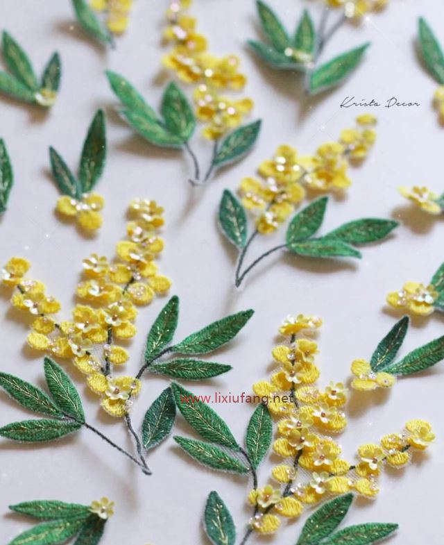 不同的處理方法如勾線、填充、排列、組合等,也使得用相同的材料可以做出截然不同的風格,這也是法式刺繡具魅力的一點。