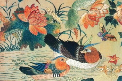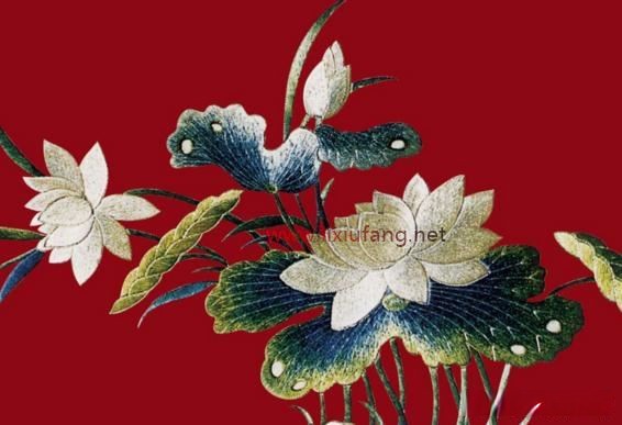 中式刺繡在構(gòu)圖的時候吸收了很多中國畫的元素,既有寫實的花鳥魚蟲,也有寫意的湖光山色。在表達物體的立體感時,會更多的使用顏色的漸變渲染,而且會根據(jù)絲線的顏色和光澤構(gòu)造出層次豐富的圖案,雖然整體上還是在一個平面上,但是卻能超出平面,看出很多的變化。