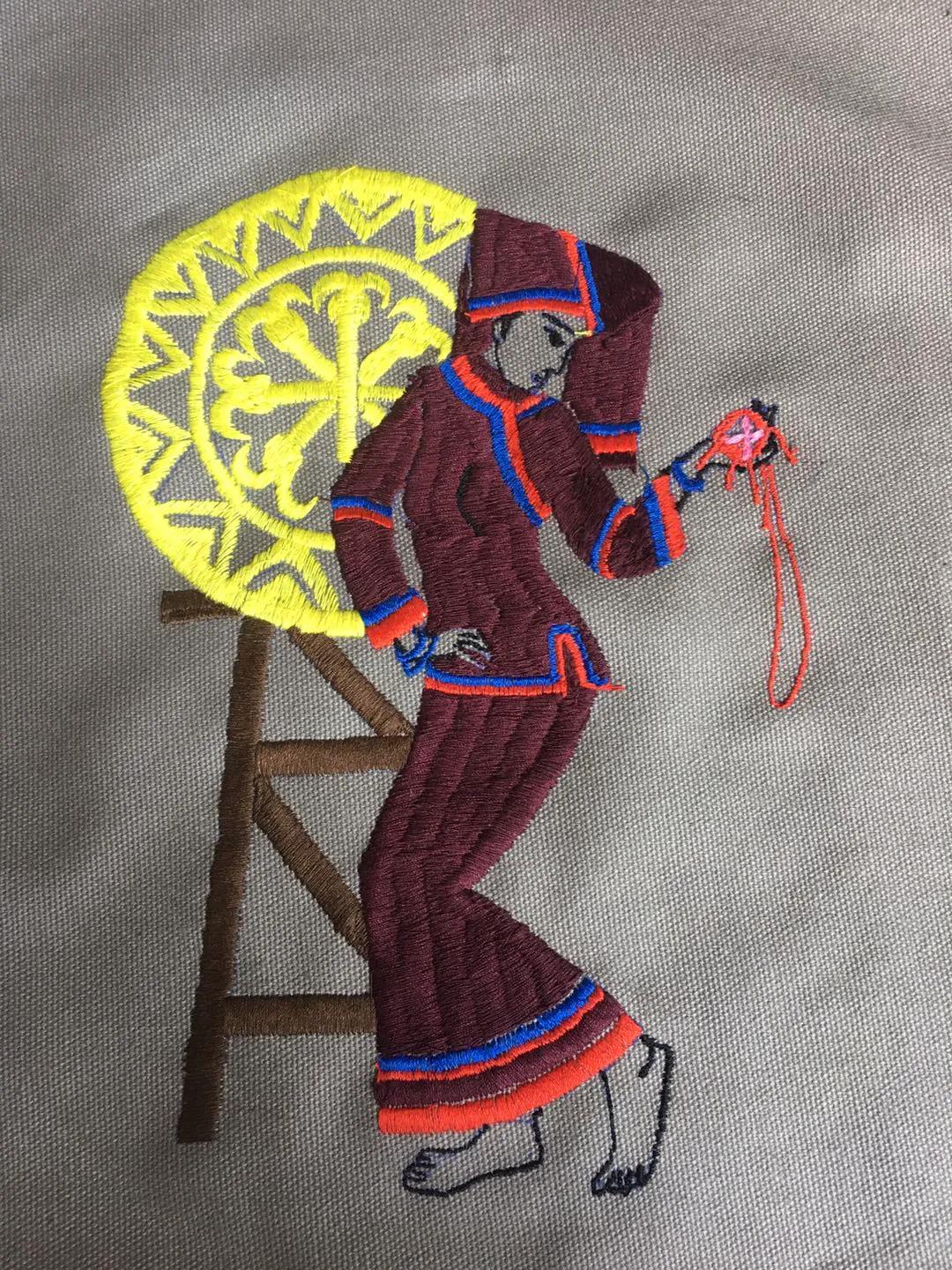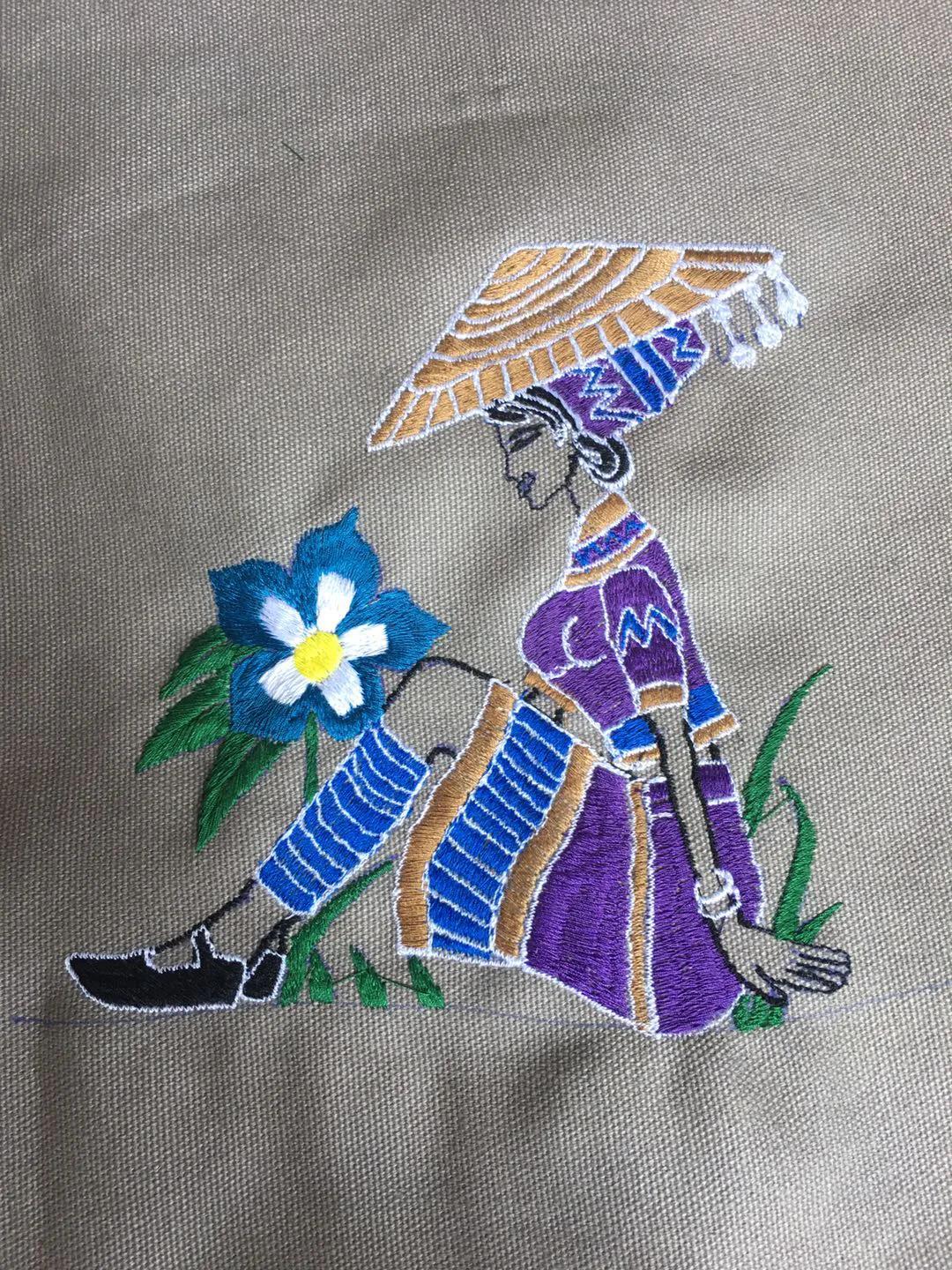 新手手推繡作業,手推繡高手進來指點一下,這是一位剛自學手推繡一個月的新手上傳的手推繡作品,這位網友通過看視頻即初步掌握了手推繡技巧。不想單調秀朵花。用剩下的布做了個錢包。根據朋友給的下圖秀在包上。壯族少女在篝火宴準備拋繡球。...