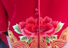 百花婚慶吉服,顏色艷麗,色彩鮮明,為您的婚禮增添難忘的記憶,下面展示了左肩,右肩及前胸的細節展示,層次感豐富,是不是很心動啊。